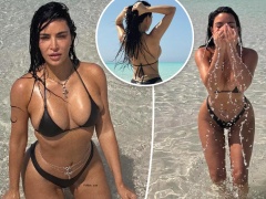 Kim Kardashian heats up spring break in a tiny bikini and body chains: ‘Cake Boss’