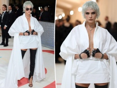 Cara Delevingne honors Karl Lagerfeld’s hair, iconic white shirt at Met Gala 2023