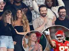 Taylor Swift cheers for Travis Kelce at Chiefs vs Jets game with Ryan Reynolds, Sophie Turner, Blake Lively and Hugh Jackman