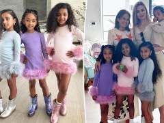 Chicago, Dream, Stormi and True match in pastel feathers and cowboy boots for Kardashian-Jenner Easter party