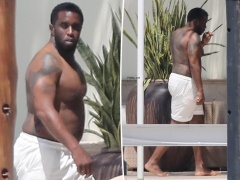 Shirtless Sean ‘Diddy’ Combs steps out for a smoke at his Miami home after sex-trafficking raids